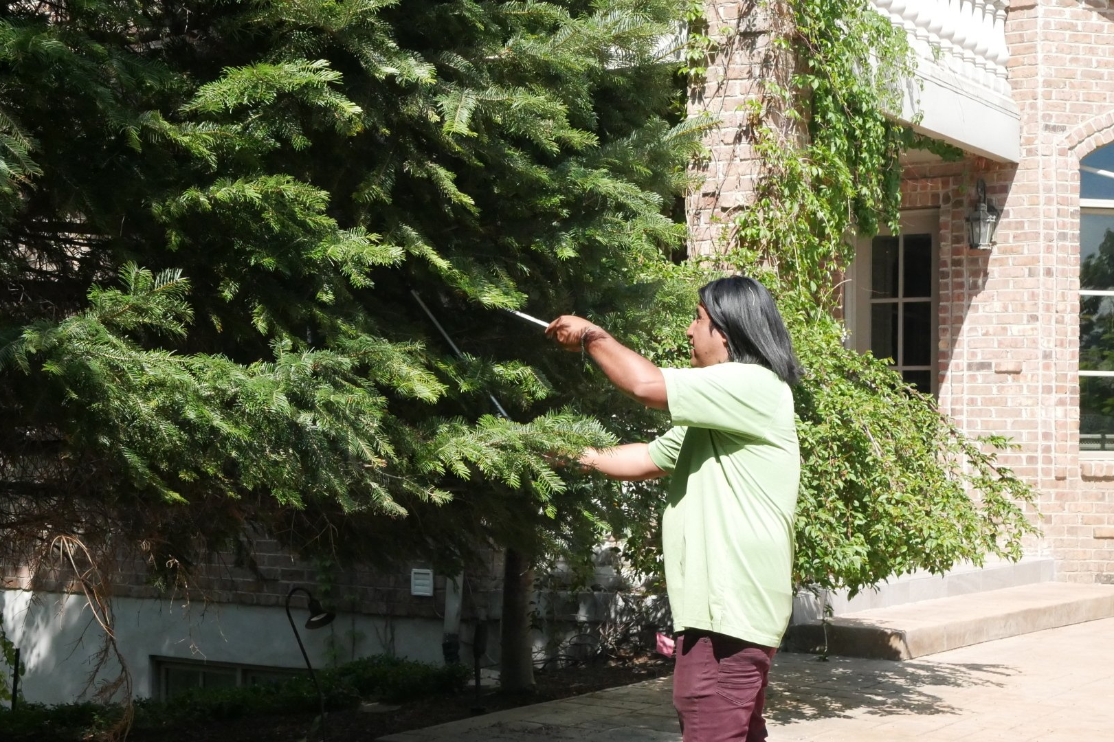 Mature evergreens can get very large and with that come the huge base that the lateral branches can make. These lower branches cover up a lot of space and disrupt visibility. Our recommendation is to (almost) always remove these lower branches to expose the ground below, to allow people to walk under and around the tree, and to open up the visibility around the sides of the tree.